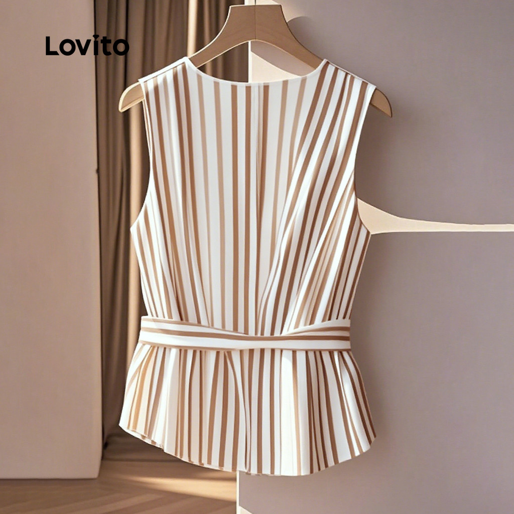 ✅DESTAQUES -❤️Amarre -se -❤️trajeto -❤️Listrado -❤️Macio e confortável -❤️Primavera e verão ✅DESCRIÇÕES Estampa / Padrão:Listrado Estilo:Elegante Tamanho Plus:Não Material:Poliéster Composição:100% Poliéster Tipo de modelagem: ajuste regular Transparência:Não Esticar:Não-elástico Feito na China ✅O PACOTE INCLUI 1XPrincipal ✅INTRODUÇÃO LOVITO A Lovito é uma marca em crescimento que acredita no poder das meninas. Estamos comprometidos em oferecer opções de roupas fashion e acessíveis, para todos os estilos, necessidades e identidades. Acreditamos que a moda deve ser divertida, liberadora e fazer você se sentir incrível. Afinal, o melhor acessório para qualquer look é a autoconfiança! ✅NOTAS DE COMPRA Antes de comprar, dê uma olhadinha na tabela de medidas disponível no site. Lembre-se de que, por serem feitas manualmente, as medidas podem variar de 1 a 2 cm. As cores dos produtos também podem ter pequenas diferenças em relação às fotos, dependendo da iluminação e das configurações do seu dispositivo. Siga nossa loja e conheça novos itens e as melhores ofertas para você!! Se você tiver alguma dúvida, converse conosco e responderemos o mais rápido possível.😊