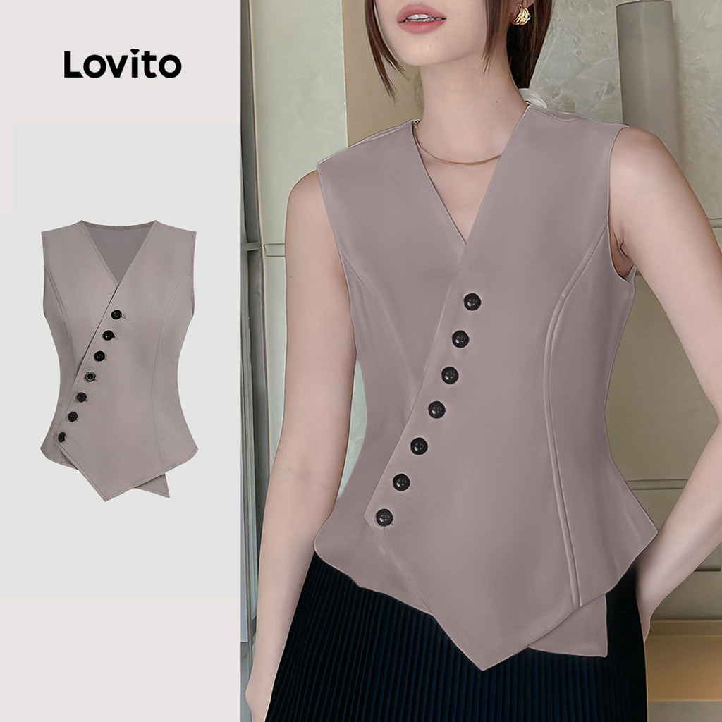 ✅DESTAQUES -❤️Assimétrico -❤️Botão -❤️minimalista -❤️Macio e confortável ✅DESCRIÇÕES Estampa / Padrão:Plano Estilo:Elegante Tamanho Plus:Não Material:Poliéster Composição:100% Poliéster Tipo de modelagem:Justo ao corpo Transparência:Não Esticar:Não-elástico Feito na China ✅O PACOTE INCLUI 1XRegatas e Camisetas ✅INTRODUÇÃO LOVITO A Lovito é uma marca em crescimento que acredita no poder das meninas. Estamos comprometidos em oferecer opções de roupas fashion e acessíveis, para todos os estilos, necessidades e identidades. Acreditamos que a moda deve ser divertida, liberadora e fazer você se sentir incrível. Afinal, o melhor acessório para qualquer look é a autoconfiança! ✅NOTAS DE COMPRA Antes de comprar, dê uma olhadinha na tabela de medidas disponível no site. Lembre-se de que, por serem feitas manualmente, as medidas podem variar de 1 a 2 cm. As cores dos produtos também podem ter pequenas diferenças em relação às fotos, dependendo da iluminação e das configurações do seu dispositivo. Siga nossa loja e conheça novos itens e as melhores ofertas para você!! Se você tiver alguma dúvida, converse conosco e responderemos o mais rápido possível.😊