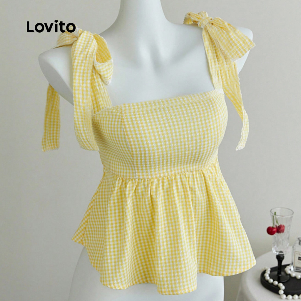 Lovito Top Elegante com e Estilosa Blusa Amarela Clara para Primavera/verão para mulheres. L172ED1865