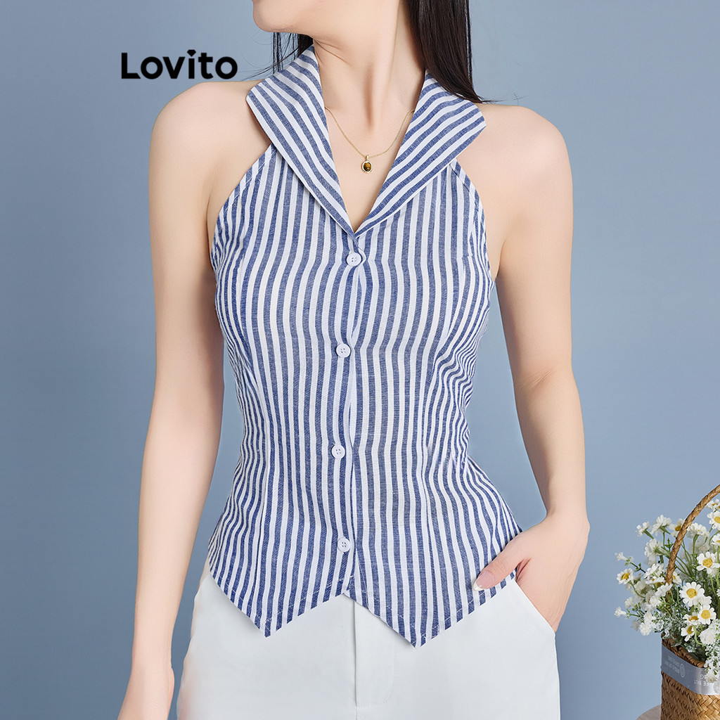 Lovito Top Elegante Listrado Com Botões, Regata Verão/primavera Para Mulheres L120LD1318