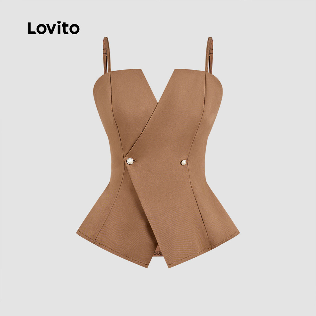Lovito Top Elegante para O Verão Na Cor Marrom para mulheres LBL33027