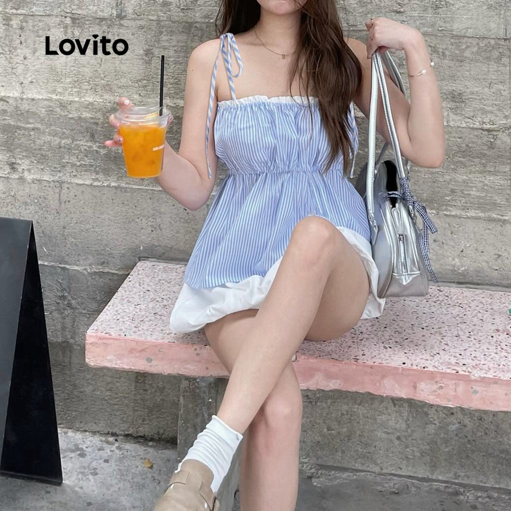 ✅DESTAQUES -❤️Pescoço de babado de babado -❤️Renda para cima -❤️Macio e confortável ✅Descrições DAS DESCRIÇÕES Padrão: Listrado Estilo: Fofo Tamanho da peça Plus: Não Material da Caixa: Poliéster Composição: 100% Poliéster Tipo de Encaixe: Encaixe Regular Folha pura: Não Estica: Não estica Região de Origem: China continental ✅REFERÊNCIA DE MODELAGEM A modelo está vestindo: P Altura: 165 cm Peso: 55 kg Busto: 88 cm Cintura: 68 cm Quadris: 93 cm ✅O PACOTE INCLUI 1x Top ✅Introdução LOVITO Introdução Lovito é uma marca emergente que acredita no poder da menina, comprometida em fornecer escolhas de roupas da moda e acessíveis para diferentes estilos, necessidades e identidades. Acreditamos que a moda deve ser divertida, liberando, e fazer você se sentir bem. Afinal, o melhor acessório para qualquer look é autoconfiança. ✅Notas de compra Por favor, consulte sua altura e a tabela de tamanhos antes de comprar. Diferença de 2-3% de acordo com a medição manual. Todas as fotos do produto nesta loja são 100% tiro real. Devido à luz e tela diferentes, uma diferença de cor sutil e erro real é normal. Siga nossa loja e conheça novos itens e melhores ofertas para você!! Se você tiver alguma dúvida, converse conosco e responderemos o mais rápido possível.😊