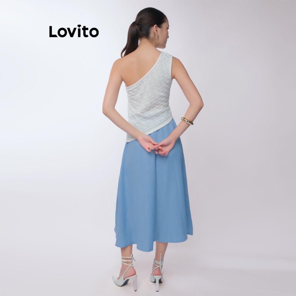 Lovito Top Um Ombro Só Branco Tricot Texturizado Barra Assimetrica Liso Feminino LB806BRL836
