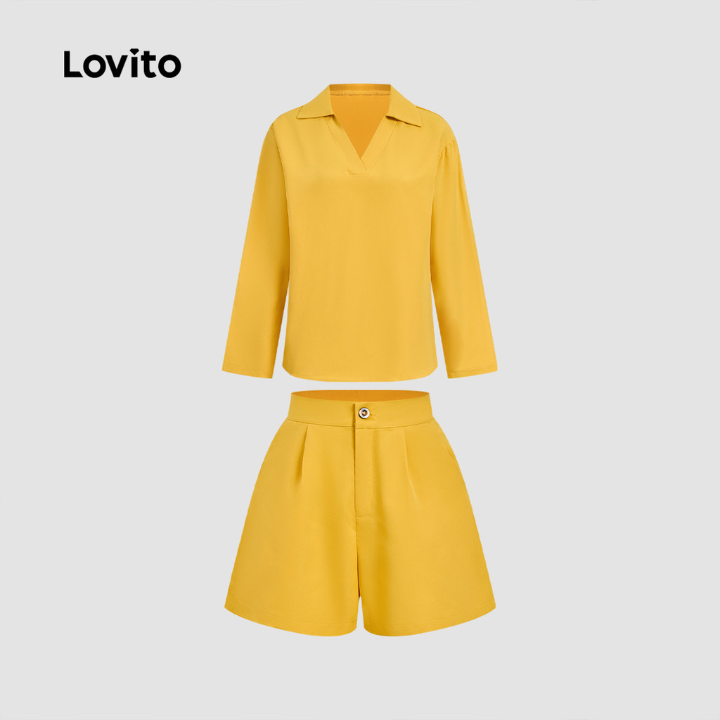 Lovito Tops ou Bottoms Casuais Lazer Primavera/verão Shorts Amarelos Tops ou Bottoms para Mulheres L165ED683