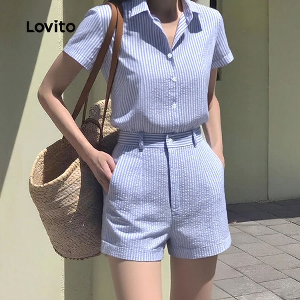 ✅DESTAQUES -❤️Lazer -❤️trajeto -❤️Listrado -❤️Macio e confortável -❤️Primavera e verão ✅DESCRIÇÕES Estampa / Padrão: Listrado Estilo:Casual Tamanho Plus:No Material: Poliéster Composição:100%Polyester Tipo de modelagem:Regular Fit Transparência:No Esticar:Non-stretch Feito na China ✅O PACOTE INCLUI 1XPartes superiores ou inferiores ✅INTRODUÇÃO LOVITO A Lovito é uma marca em crescimento que acredita no poder das meninas. Estamos comprometidos em oferecer opções de roupas fashion e acessíveis, para todos os estilos, necessidades e identidades. Acreditamos que a moda deve ser divertida, liberadora e fazer você se sentir incrível. Afinal, o melhor acessório para qualquer look é a autoconfiança! ✅NOTAS DE COMPRA Antes de comprar, dê uma olhadinha na tabela de medidas disponível no site. Lembre-se de que, por serem feitas manualmente, as medidas podem variar de 1 a 2 cm. As cores dos produtos também podem ter pequenas diferenças em relação às fotos, dependendo da iluminação e das configurações do seu dispositivo. Siga nossa loja e conheça novos itens e as melhores ofertas para você!! Se você tiver alguma dúvida, converse conosco e responderemos o mais rápido possível.😊