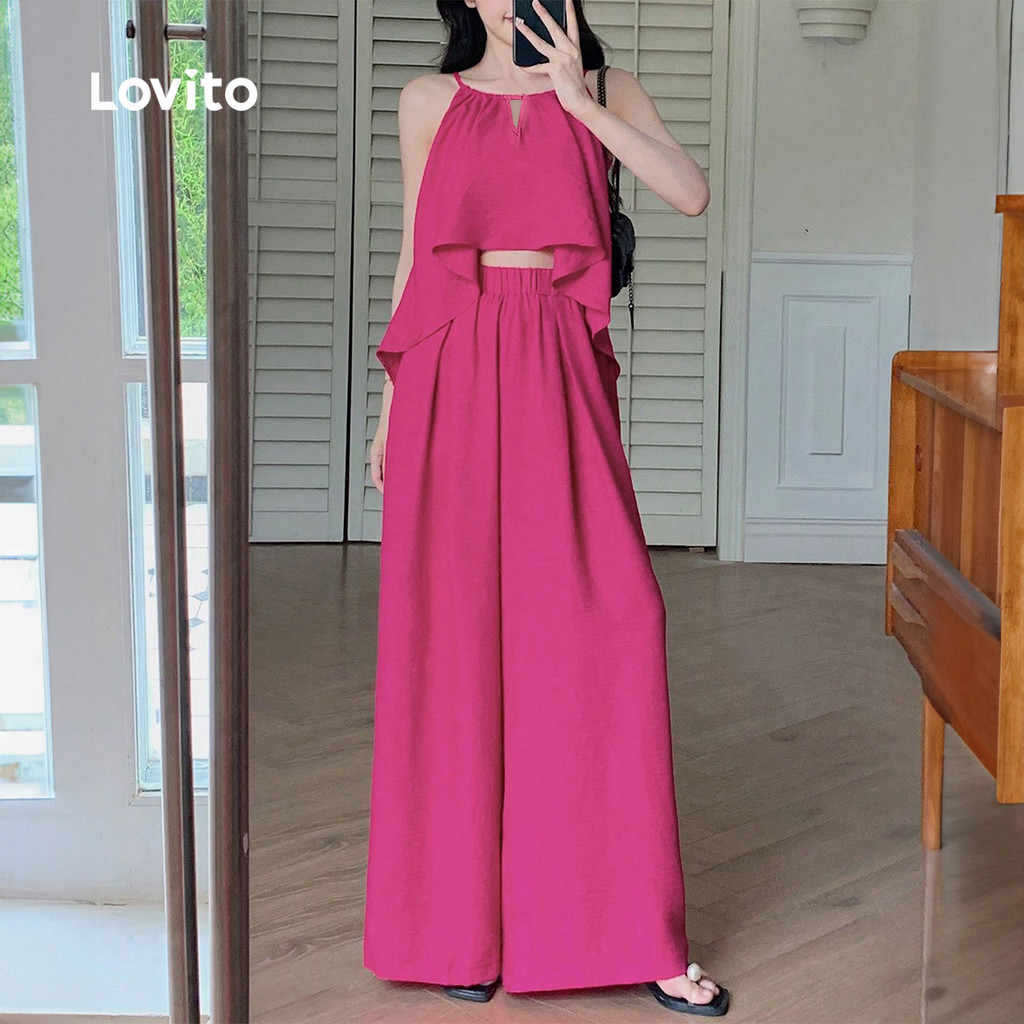 Lovito Tops ou Bottoms Elegantes Estilosos para Primavera/verão Calças Vermelhas Rosa para Mulheres L178ED1364