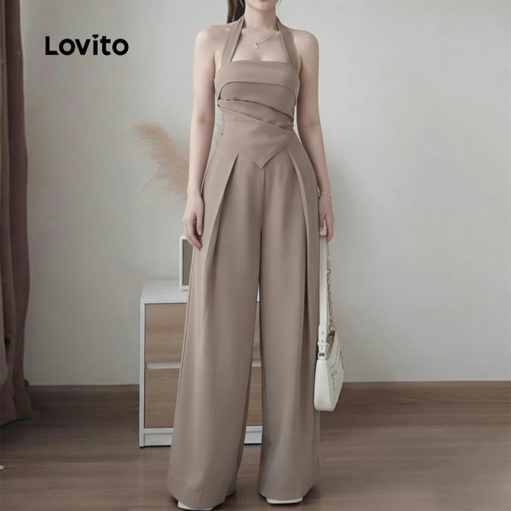 Lovito Tops ou calças casuais com babados assimétricos primavera/verão cáqui tops ou calças para mulheres LK3ED622