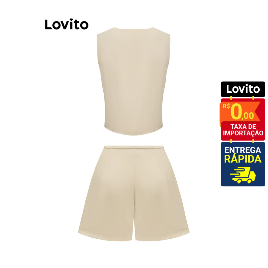 Lovito Tops ou calças Femininas Casuais com Botões na Frente L87ED138
