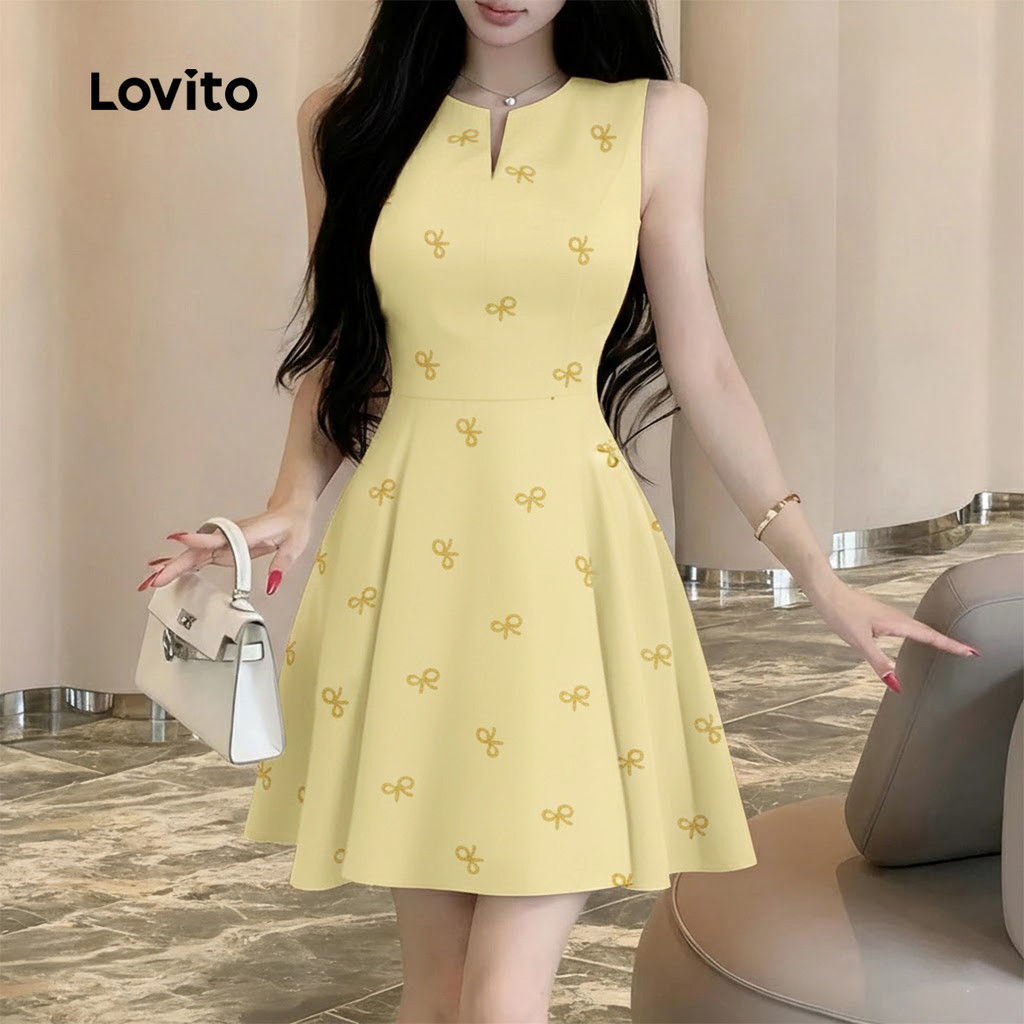 ✅DESTAQUES -❤️Arco -❤️Macio e confortável -❤️Primavera e verão ✅DESCRIÇÕES Estampa / Padrão:Laço Estilo:Elegante. Tipo de vestido:Um Item. Tamanho Plus:No Material:Poliéster Composição:100%Polyester Tipo de modelagem:Regular Fit Transparência:No Esticar:Non-stretch Feito na China ✅O PACOTE INCLUI 1XVestir ✅INTRODUÇÃO LOVITO A Lovito é uma marca em crescimento que acredita no poder das meninas. Estamos comprometidos em oferecer opções de roupas fashion e acessíveis, para todos os estilos, necessidades e identidades. Acreditamos que a moda deve ser divertida, liberadora e fazer você se sentir incrível. Afinal, o melhor acessório para qualquer look é a autoconfiança! ✅NOTAS DE COMPRA Antes de comprar, dê uma olhadinha na tabela de medidas disponível no site. Lembre-se de que, por serem feitas manualmente, as medidas podem variar de 1 a 2 cm. As cores dos produtos também podem ter pequenas diferenças em relação às fotos, dependendo da iluminação e das configurações do seu dispositivo. Siga nossa loja e conheça novos itens e as melhores ofertas para você!! Se você tiver alguma dúvida, converse conosco e responderemos o mais rápido possível.