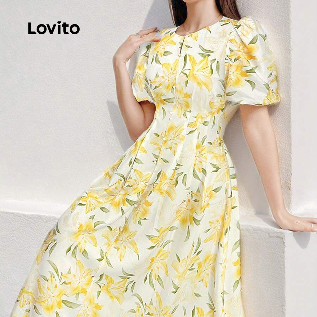 Lovito Vestido Amarelo Romântico Com Botões Florais Para Primavera/verão Para Mulheres L134ED401