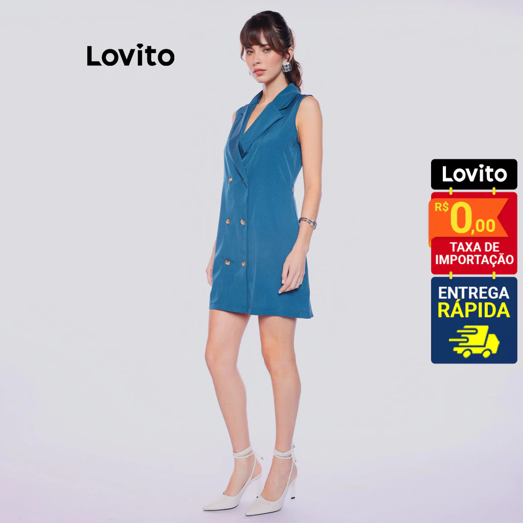 Lovito Vestido Blazer Curto Trabalho Social Elegante Moda com Botões LB963BRL993