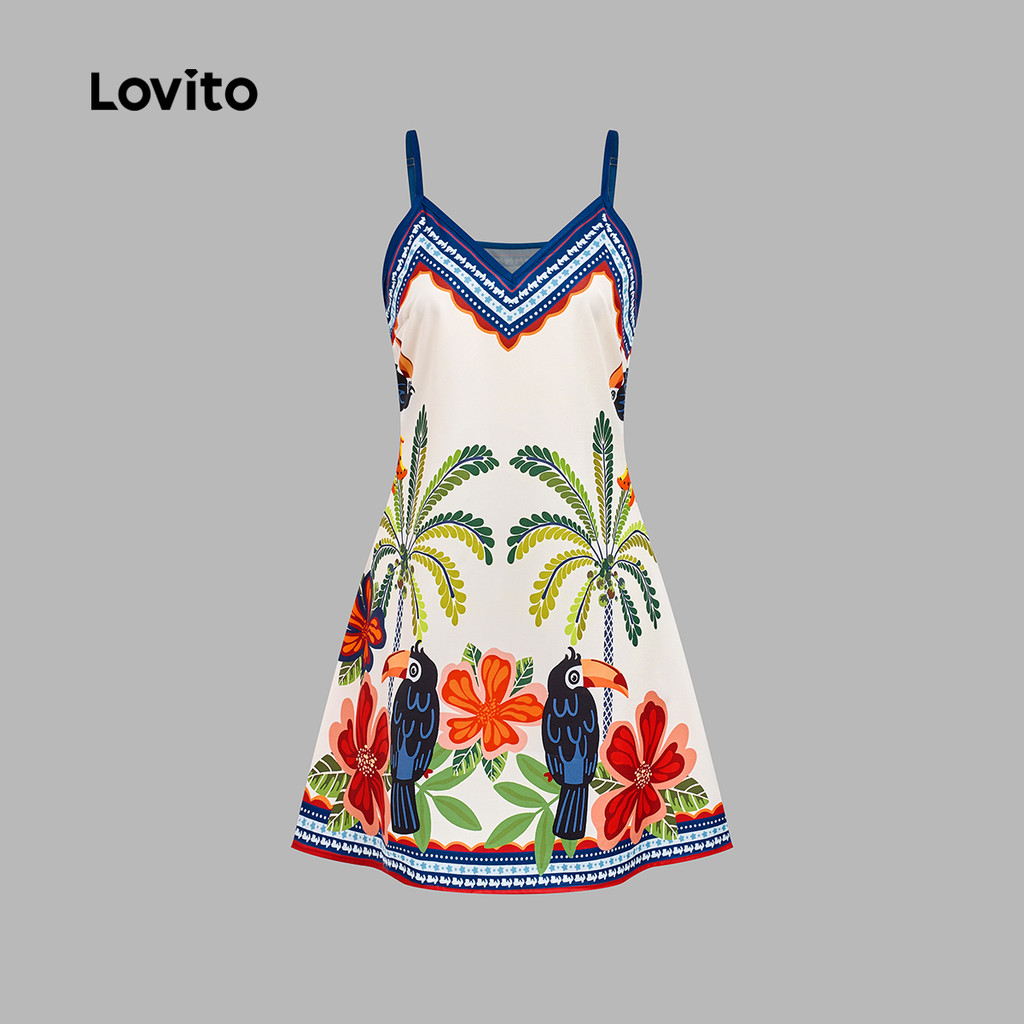 Lovito Vestido Boho Alça de Ombro Ajustável Vestido Primavera/verão para Mulheres LBL31253