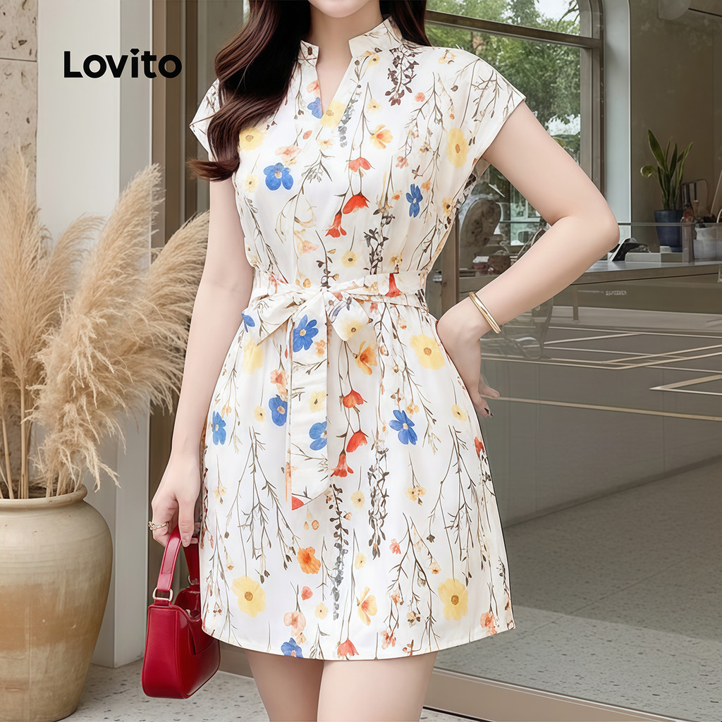 Lovito Vestido Boho com Cinto e Estampa Vestido de Primavera/verão para mulheres L177ED1063