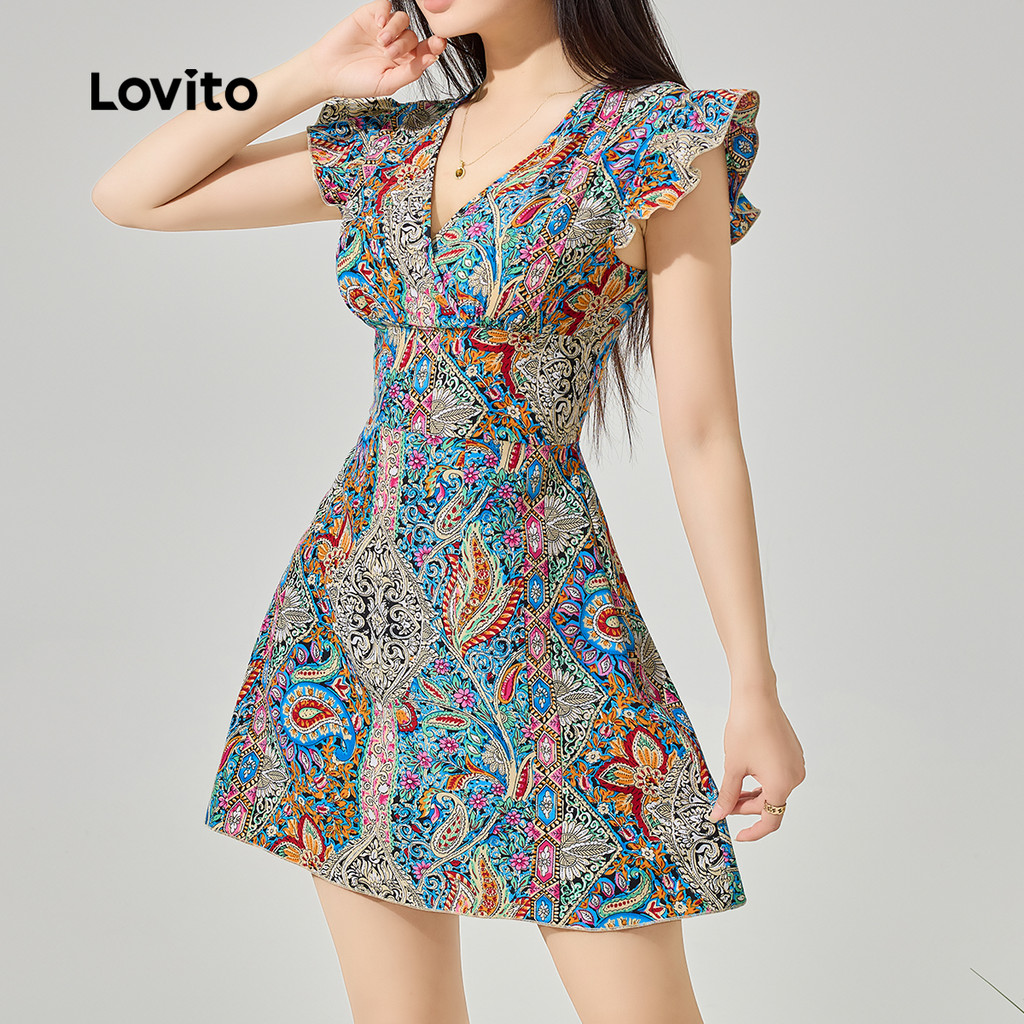 Lovito Vestido Boho Com Estampa Tribal E Babados Para Verão/primavera Feminino L123ED111