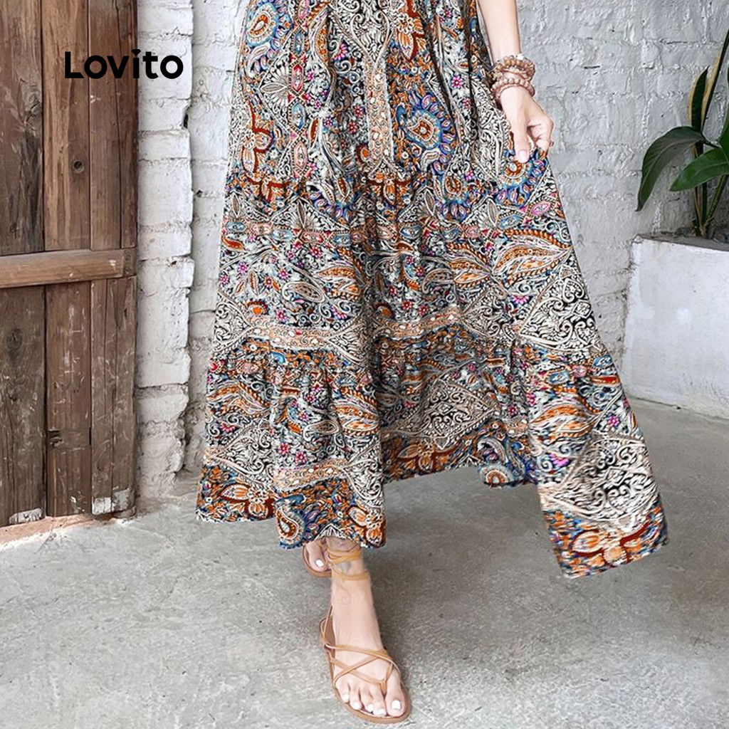 Lovito Vestido Boho Com Estampa Tribal Vestido Multicolorido Primavera/Verão Para Mulheres LNE1032X059
