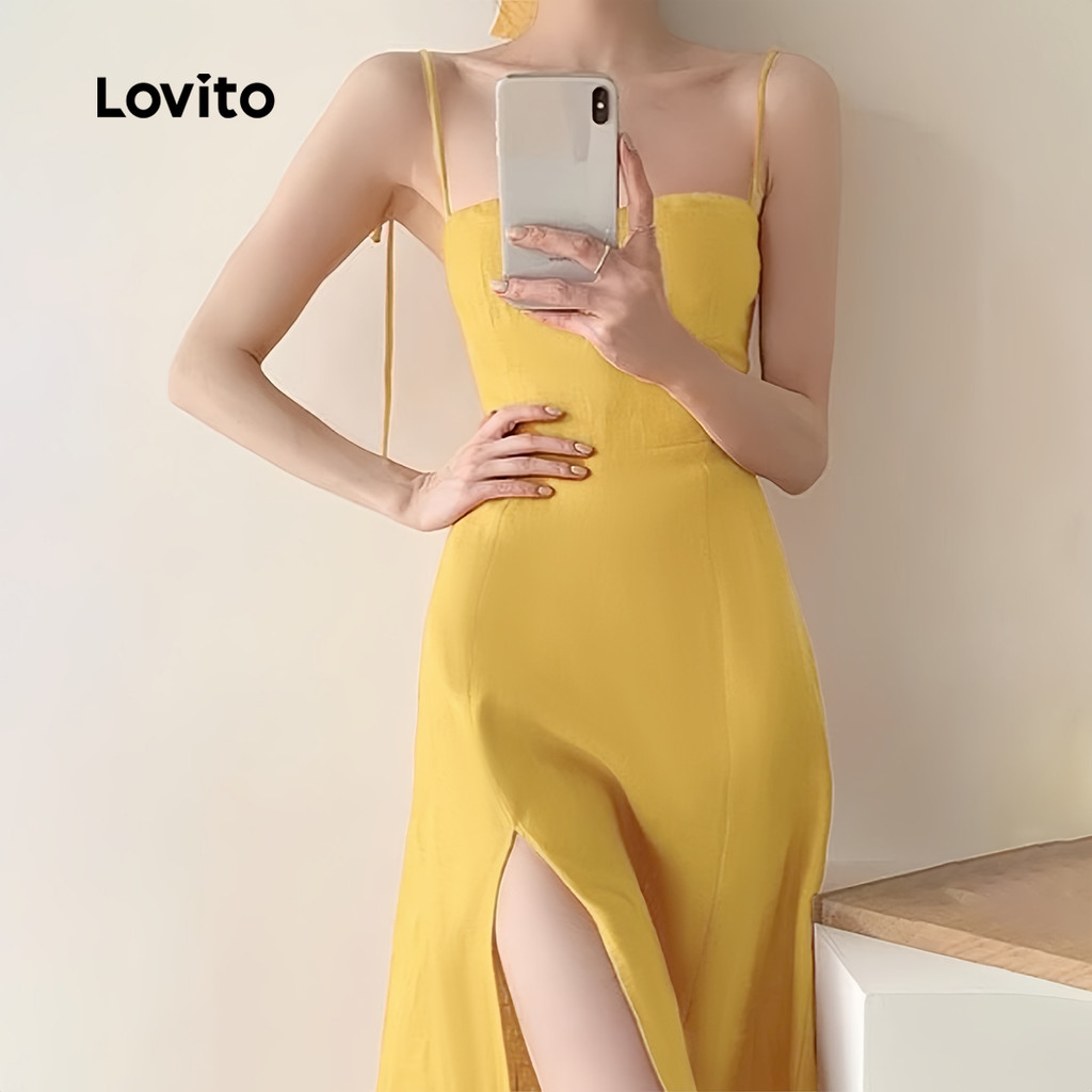 Lovito Vestido Boho com Fenda Na Frente Macio e Confortável Vestido Amarelo de primavera/verão L137ED583