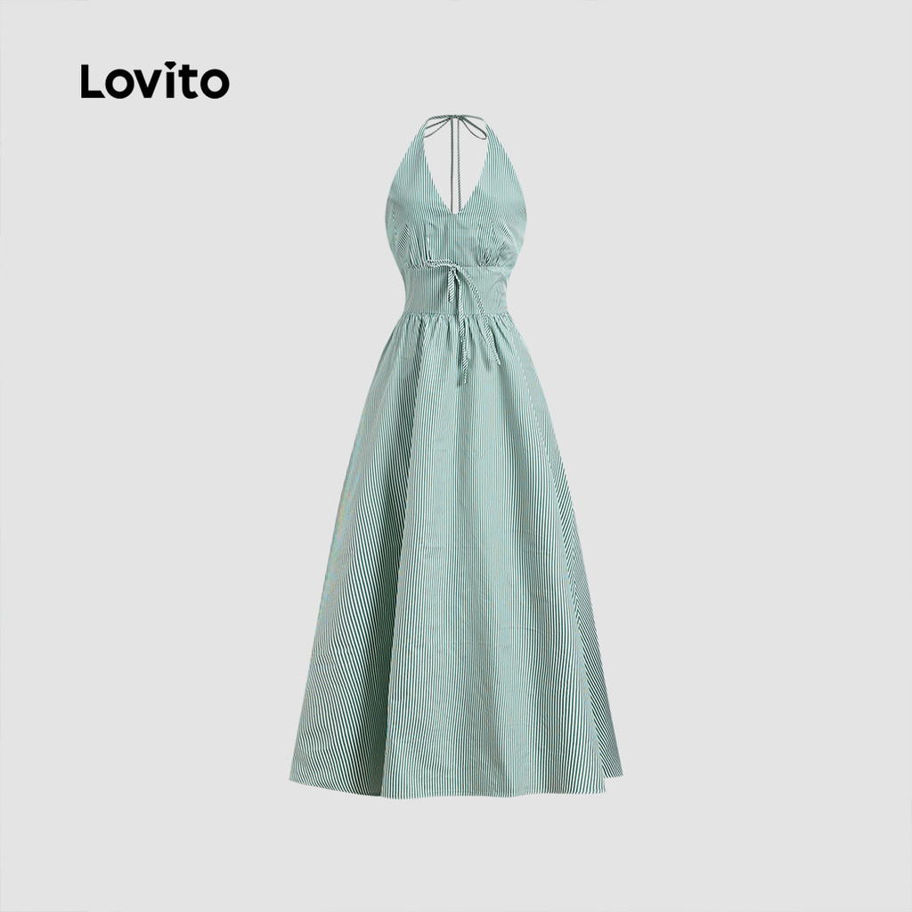 Lovito Vestido Boho com zíper e costas nuas com laço primavera/verão vestido verde para mulheres LBL32162