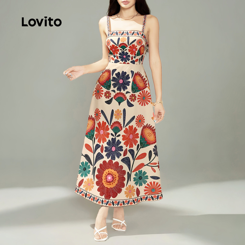 Lovito Vestido Boho com Zíper para Primavera Verão Feminino LBL29256