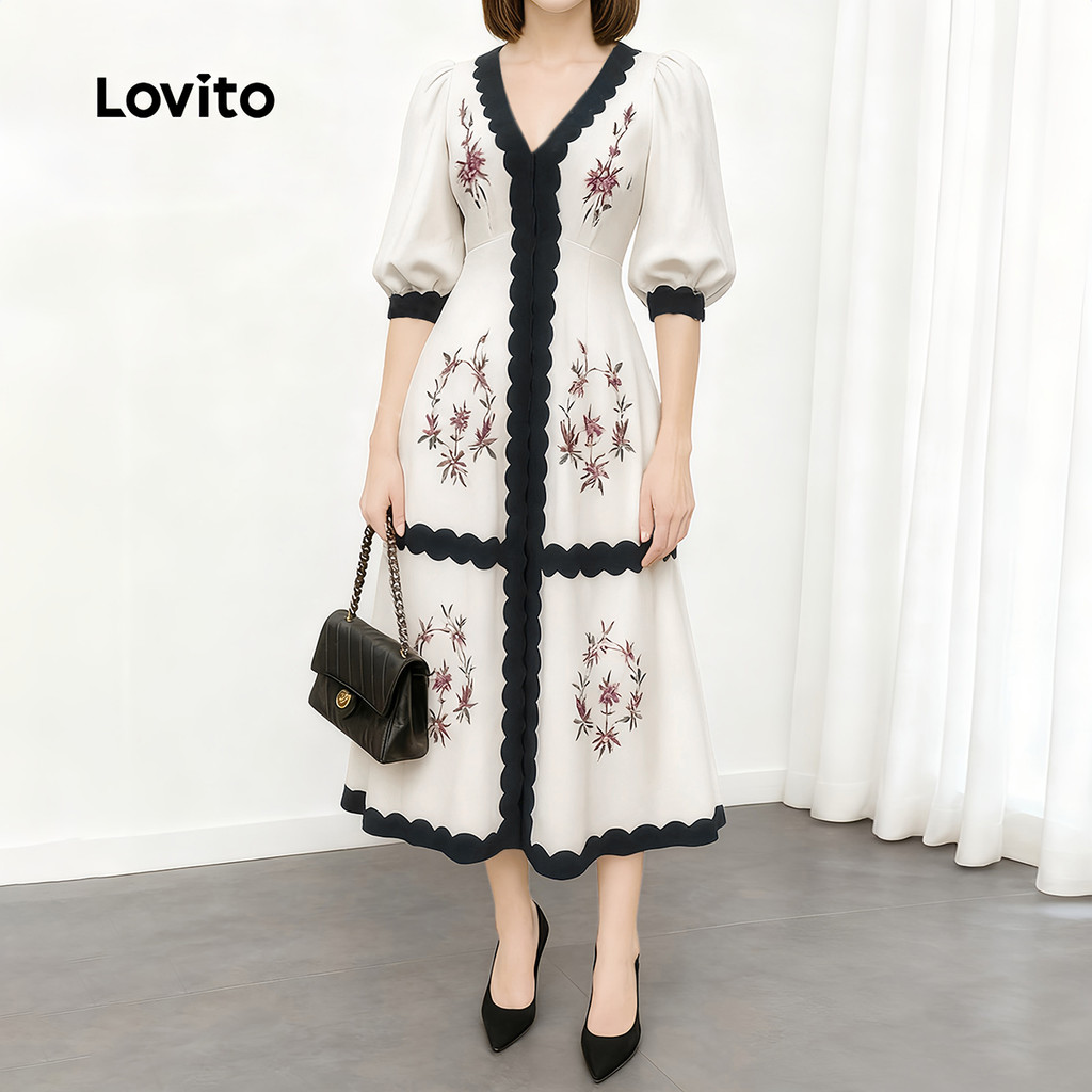 Lovito Vestido Boho Estrutura Linha Primavera/verão para Mulheres LK2LD442
