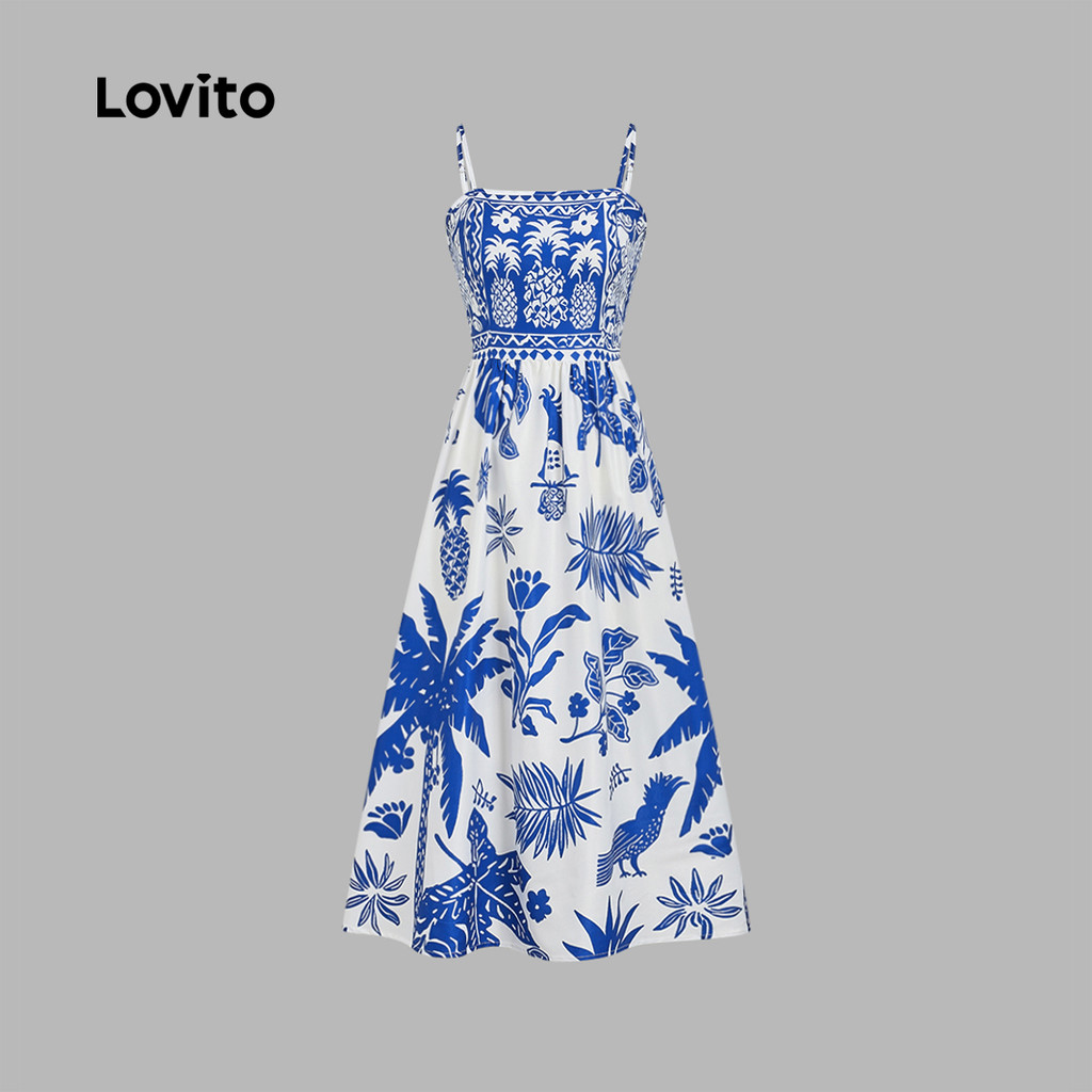 Lovito Vestido Boho Étnico Estampado Com Zíper Azul Para Primavera/verão Feminino LBL32054