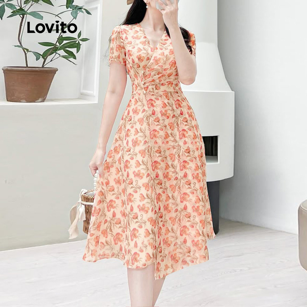 Lovito Vestido Boho Feminino em Laranja Queimado com Estampa Floral para Primavera/Verão L134ED780