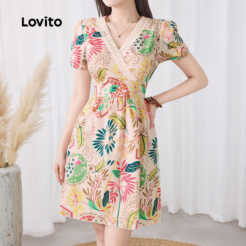 Lovito Vestido Boho Floral Com Babados E Gola Estampada Para Mulheres L132ED449