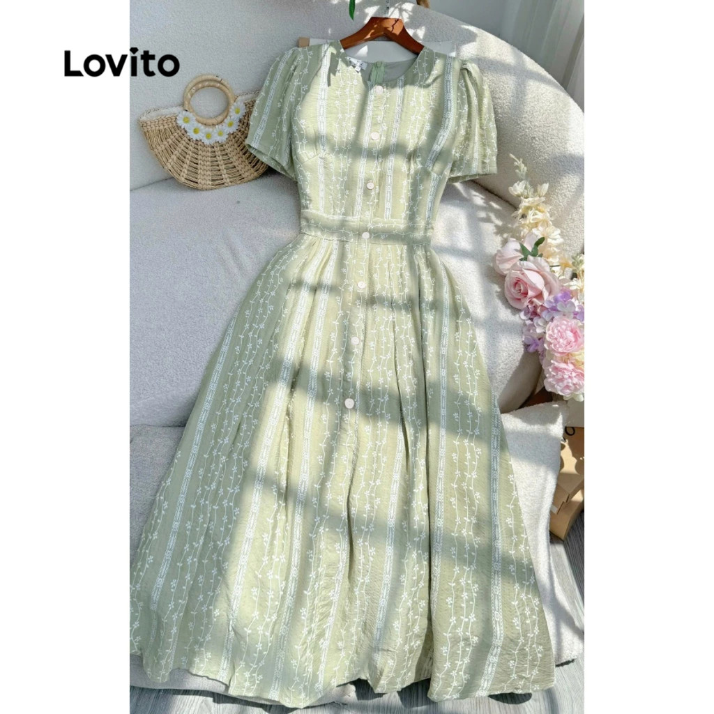 Lovito Vestido Boho Verde Primavera/verão Para Mulheres L149ED152