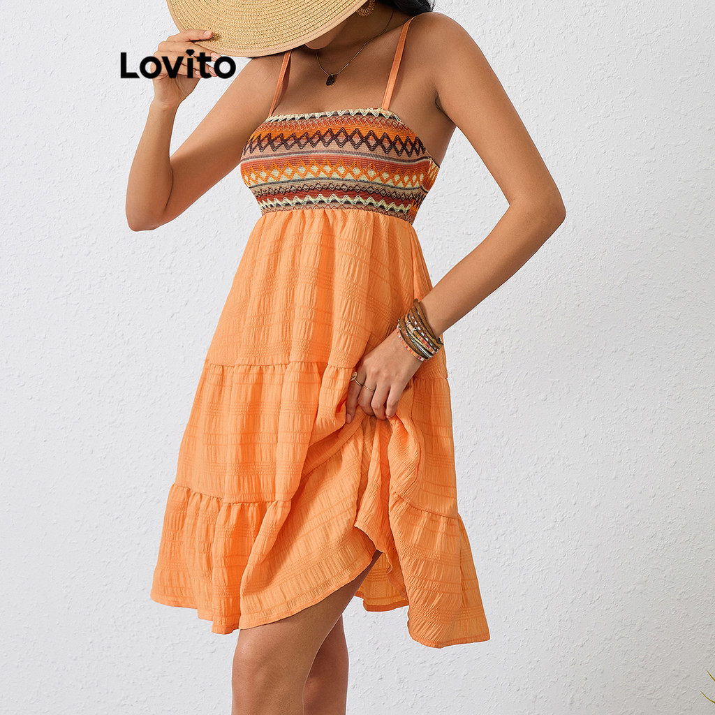Lovito Vestido Boho Vestido Jacquard Geométrico Para Mulheres LBL17589