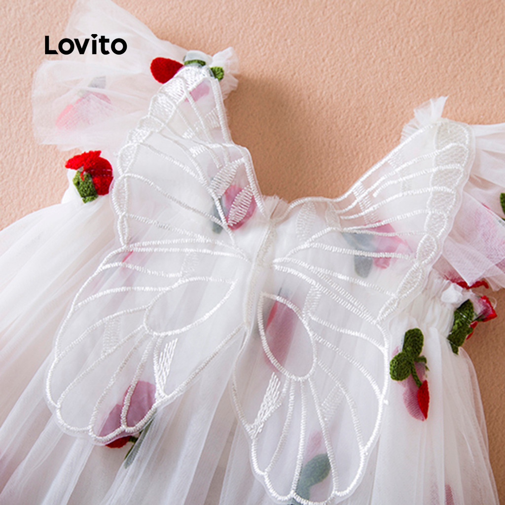 Lovito Vestido Branco Com Babados De Desenho Animado Fofo Para Bebê LCS099022