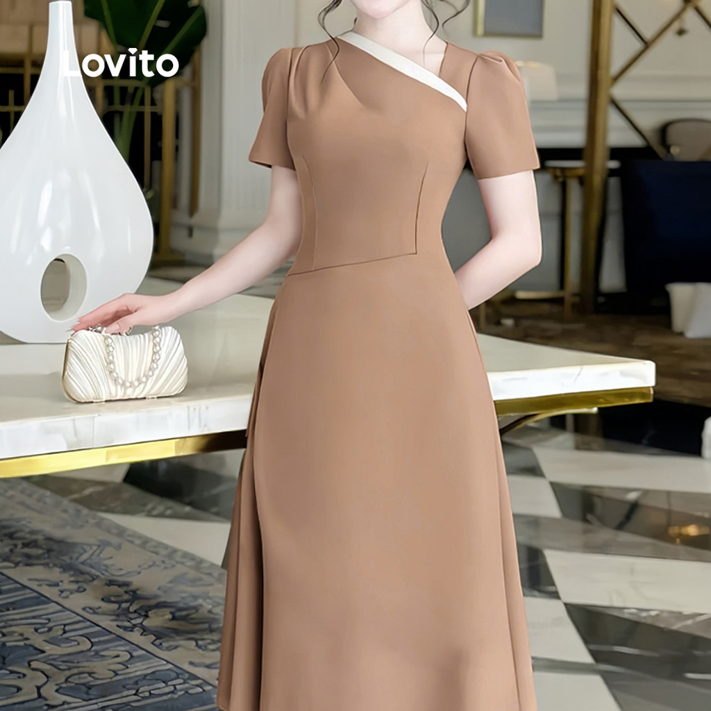 ✅DESTAQUES -❤️Assimétrico -❤️Cor de contrasteColorblock -❤️Macio e confortável -❤️Primavera e verão ✅DESCRIÇÕES Estampa / Padrão:Plain Estilo:Casual Tipo de vestido:Uma Linha Tamanho Plus:No Material:Poliéster Composição:100%Polyester Tipo de modelagem:Regular Fit Transparência:No Esticar:Non-stretch Feito na China ✅O PACOTE INCLUI 1XVestir ✅INTRODUÇÃO LOVITO A Lovito é uma marca em crescimento que acredita no poder das meninas. Estamos comprometidos em oferecer opções de roupas fashion e acessíveis, para todos os estilos, necessidades e identidades. Acreditamos que a moda deve ser divertida, liberadora e fazer você se sentir incrível. Afinal, o melhor acessório para qualquer look é a autoconfiança! ✅NOTAS DE COMPRA Antes de comprar, dê uma olhadinha na tabela de medidas disponível no site. Lembre-se de que, por serem feitas manualmente, as medidas podem variar de 1 a 2 cm. As cores dos produtos também podem ter pequenas diferenças em relação às fotos, dependendo da iluminação e das configurações do seu dispositivo. Siga nossa loja e conheça novos itens e as melhores ofertas para você!! Se você tiver alguma dúvida, converse conosco e responderemos o mais rápido possível.