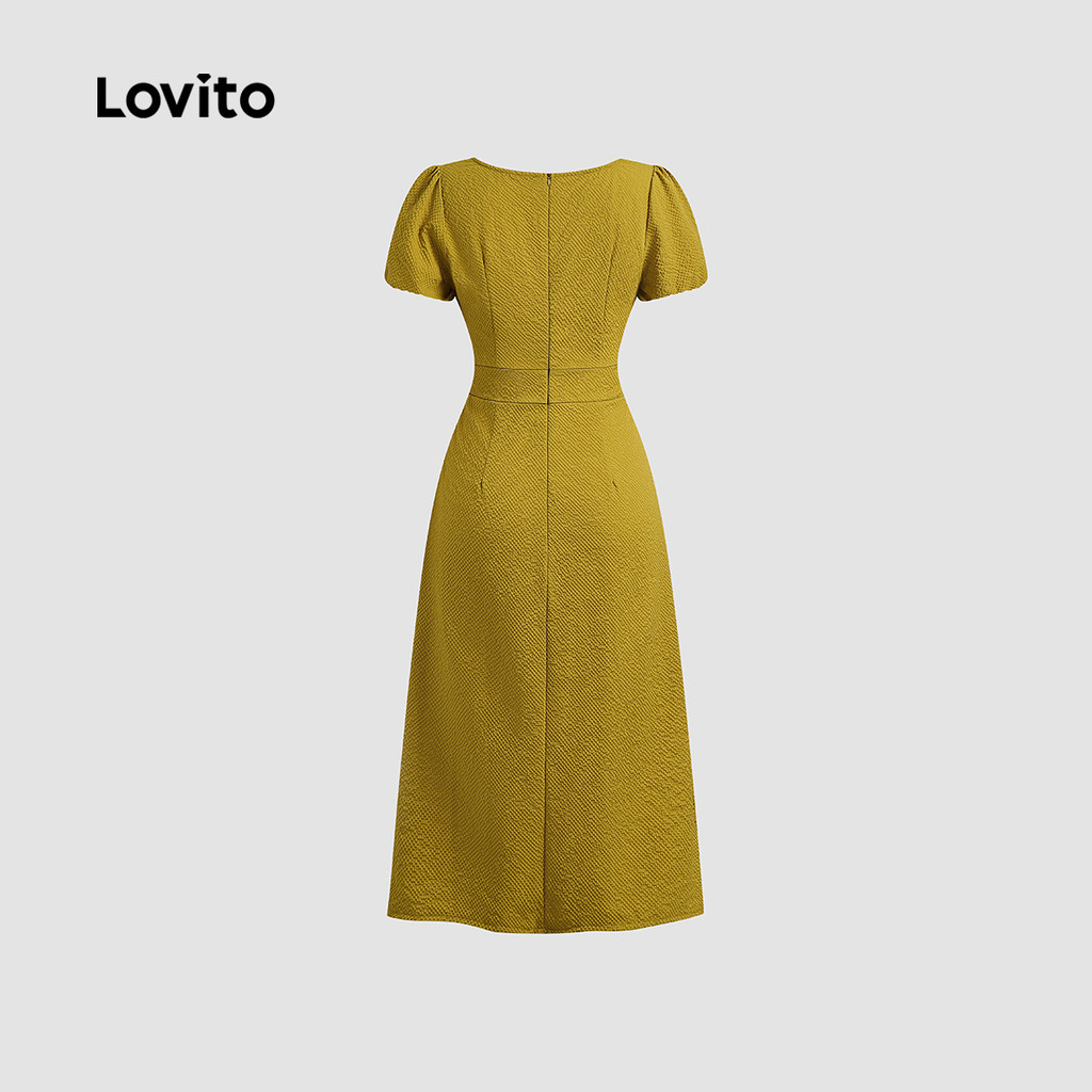 Lovito Vestido Casual Botão Primavera/Verão Vestido Amarelo Para Mulheres L134ED162