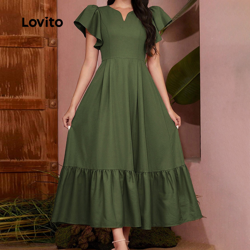 Lovito Vestido Casual com Babado Toque Suave Ao Toque para Primavera/verão Verde para mulheres LBL26262