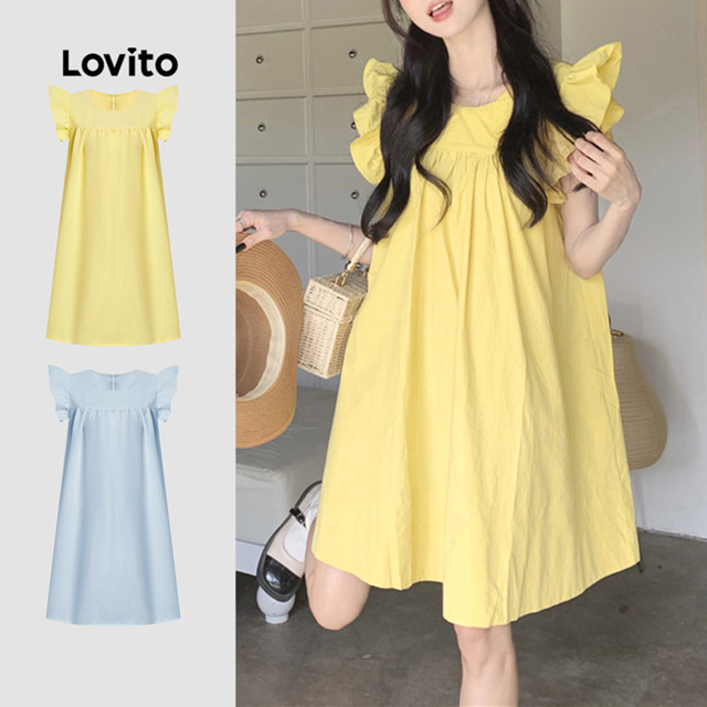 Lovito Vestido Casual Com Babados Drapeado Vestido De Verão/Primavera Para Mulheres L177AD076