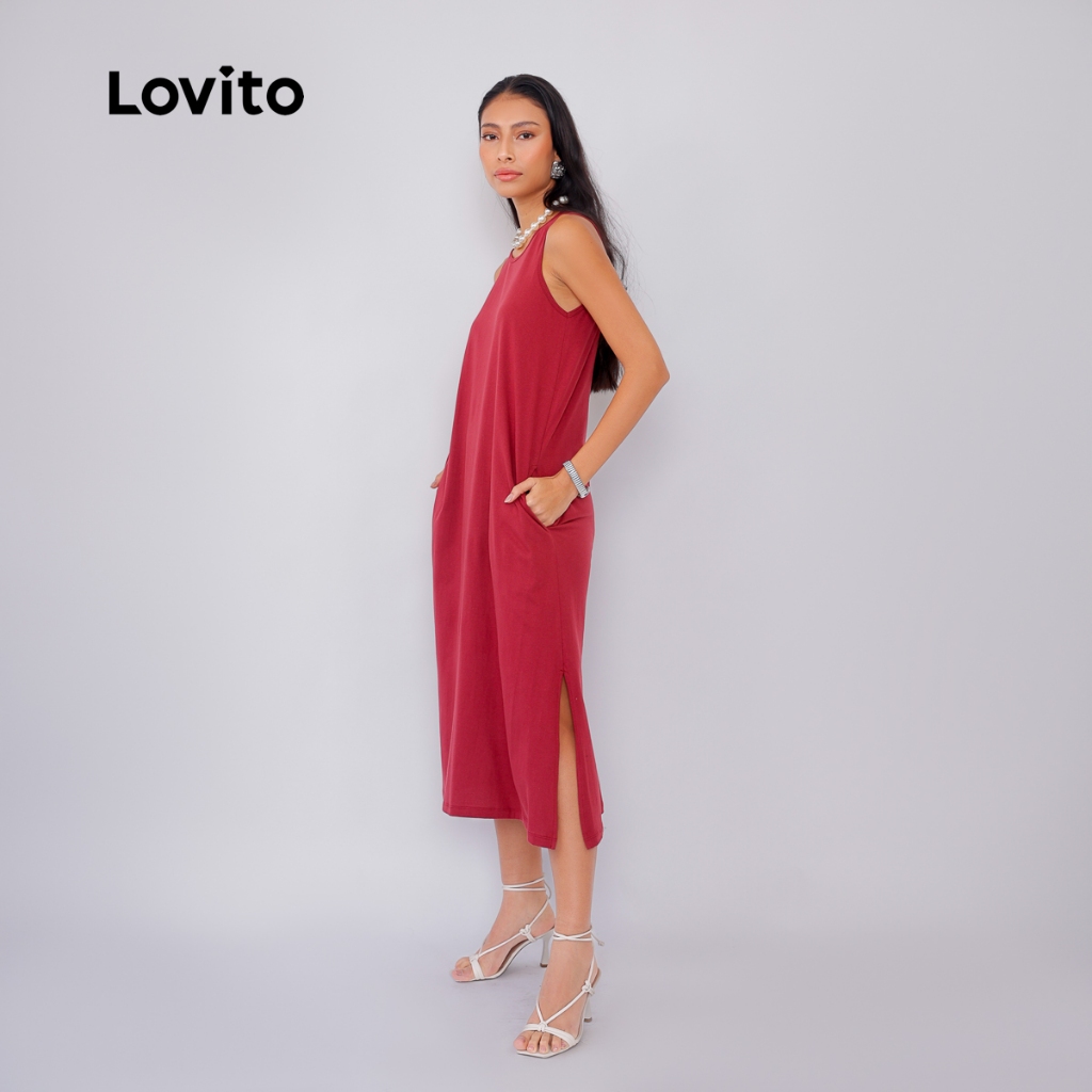 Lovito Vestido Casual Com Bolsos Amplo Lisa para Mulheres DRB619BRL649