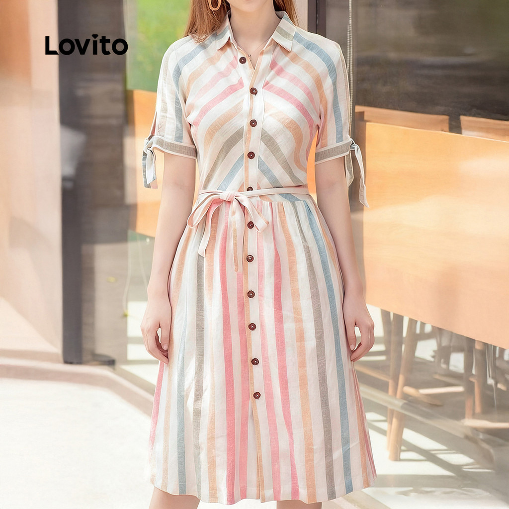 ✅DESTAQUES -❤️BotãoBotão -❤️Gravata frontal -❤️Boa Textura -❤️Primavera e verão ✅DESCRIÇÕES Estampa / Padrão:Rainbow stripe Estilo:Casual Tipo de vestido:Flared Tamanho Plus:No Material:Poliéster Composição:100%Polyester Tipo de modelagem:Regular Fit Transparência:No Esticar:Non-stretch Feito na China ✅O PACOTE INCLUI 1XVestir ✅INTRODUÇÃO LOVITO A Lovito é uma marca em crescimento que acredita no poder das meninas. Estamos comprometidos em oferecer opções de roupas fashion e acessíveis, para todos os estilos, necessidades e identidades. Acreditamos que a moda deve ser divertida, liberadora e fazer você se sentir incrível. Afinal, o melhor acessório para qualquer look é a autoconfiança! ✅NOTAS DE COMPRA Antes de comprar, dê uma olhadinha na tabela de medidas disponível no site. Lembre-se de que, por serem feitas manualmente, as medidas podem variar de 1 a 2 cm. As cores dos produtos também podem ter pequenas diferenças em relação às fotos, dependendo da iluminação e das configurações do seu dispositivo. Siga nossa loja e conheça novos itens e as melhores ofertas para você!! Se você tiver alguma dúvida, converse conosco e responderemos o mais rápido possível.