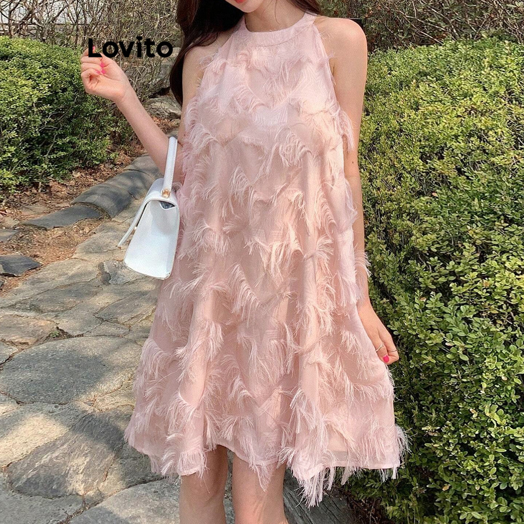 Lovito Vestido Casual Com Franjas Lisas Para Mulheres L106AD483