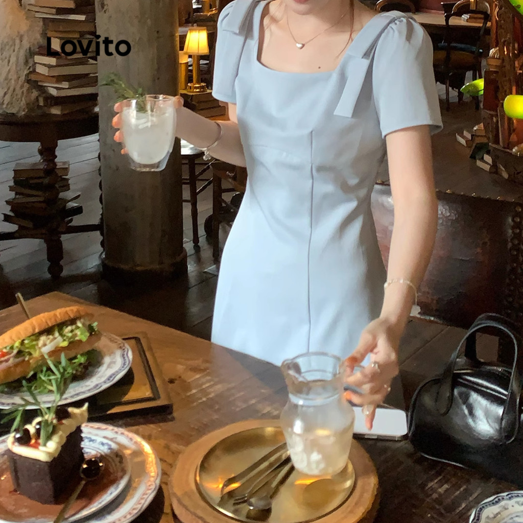 Lovito Vestido Casual Com Laço Liso Para Mulheres L133ED597