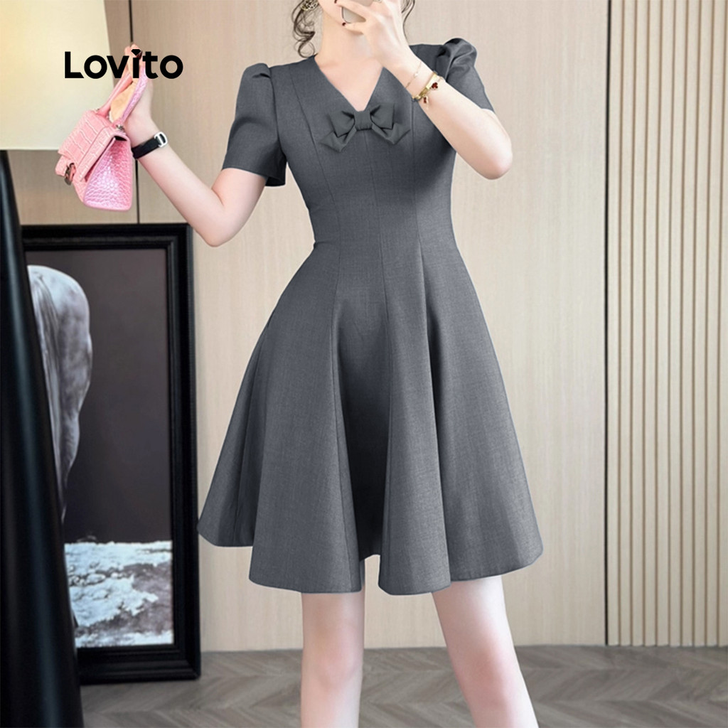 Lovito Vestido Casual com Laço para Primavera/verão Cor Cinza para mulheres L154ED371
