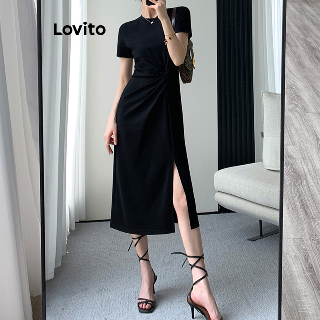 Lovito Vestido Casual Com Nó Frontal Dividido, Verão/Primavera Feminino L83ED366