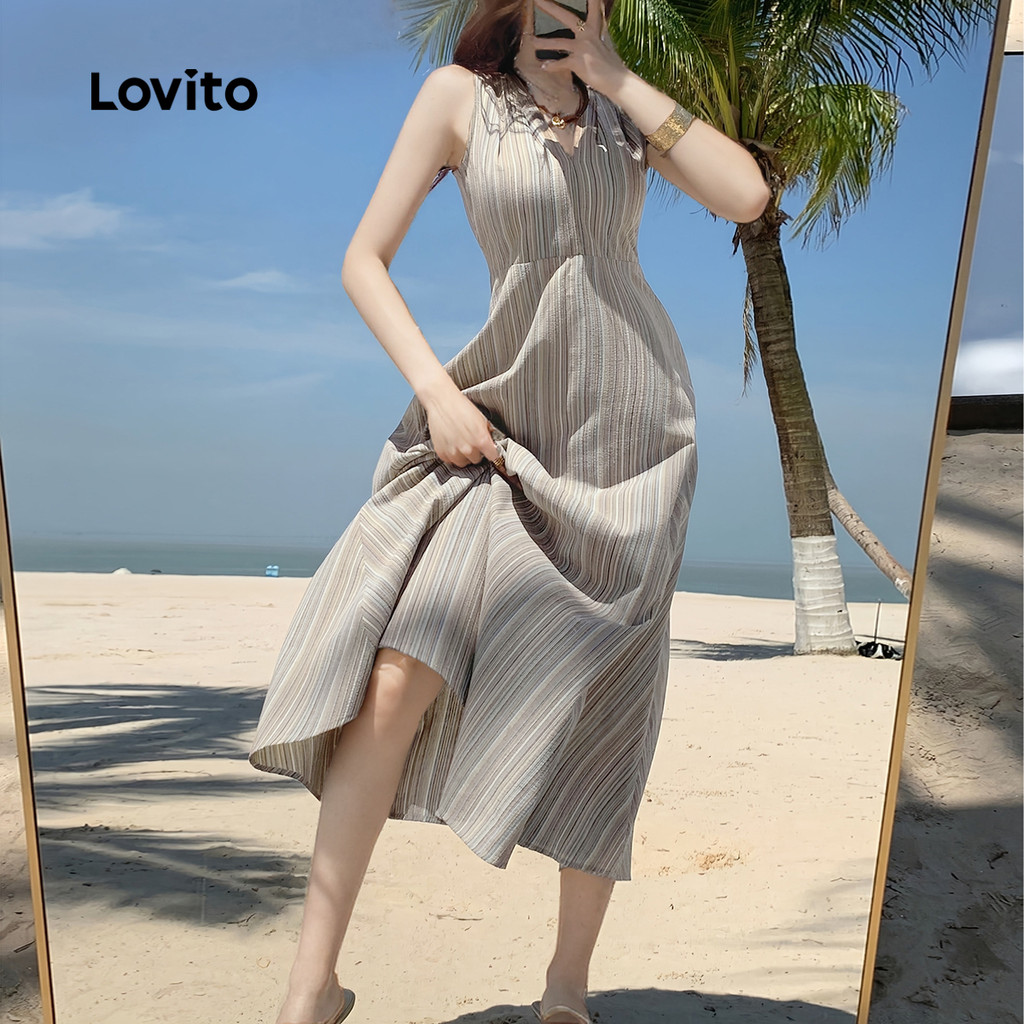 ✅DESTAQUES -❤️Plissado -❤️Geométrico -❤️Macio e confortável -❤️Primavera e verão -❤️Fixação de zip-back ✅DESCRIÇÕES Estampa / Padrão: listrado Estilo:Casual Tipo de vestido:A Linha Tamanho Plus:Não Material:Poliéster Composição:100% Poliéster Tipo de modelagem: Ajuste Regular Transparência:Não Esticar:Não-elástico Feito na China ✅O PACOTE INCLUI 1XVestir ✅INTRODUÇÃO LOVITO A Lovito é uma marca em crescimento que acredita no poder das meninas. Estamos comprometidos em oferecer opções de roupas fashion e acessíveis, para todos os estilos, necessidades e identidades. Acreditamos que a moda deve ser divertida, liberadora e fazer você se sentir incrível. Afinal, o melhor acessório para qualquer look é a autoconfiança! ✅NOTAS DE COMPRA Antes de comprar, dê uma olhadinha na tabela de medidas disponível no site. Lembre-se de que, por serem feitas manualmente, as medidas podem variar de 1 a 2 cm. As cores dos produtos também podem ter pequenas diferenças em relação às fotos, dependendo da iluminação e das configurações do seu dispositivo. Siga nossa loja e conheça novos itens e as melhores ofertas para você!! Se você tiver alguma dúvida, converse conosco e responderemos o mais rápido possível.😊