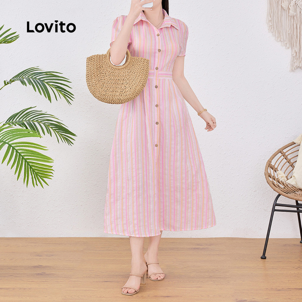 Lovito Vestido Casual de Botão para Spring/summer para mulheres L143EDD534