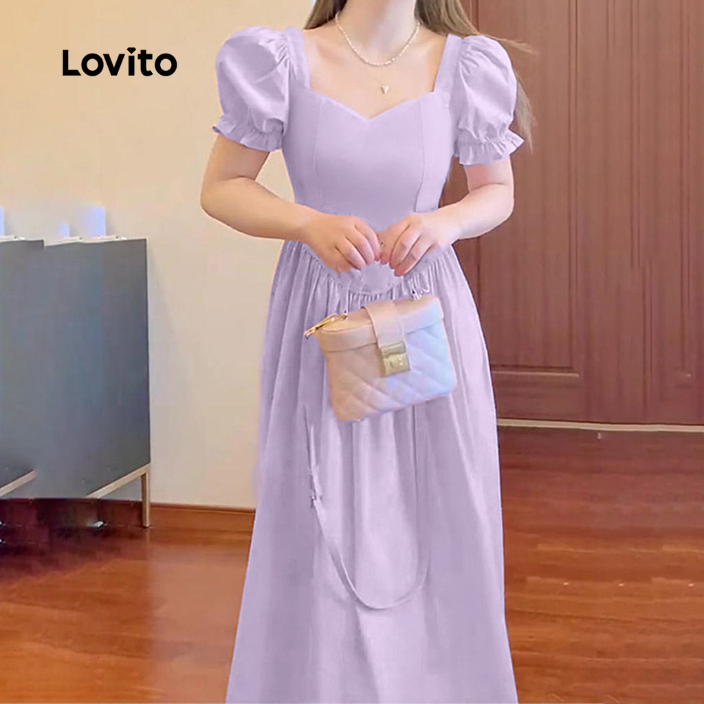 Lovito Vestido Casual De Festa Estilo Princesa Com Zíper Roxo Para Mulheres Ideal Para Primavera/verão L142LD464