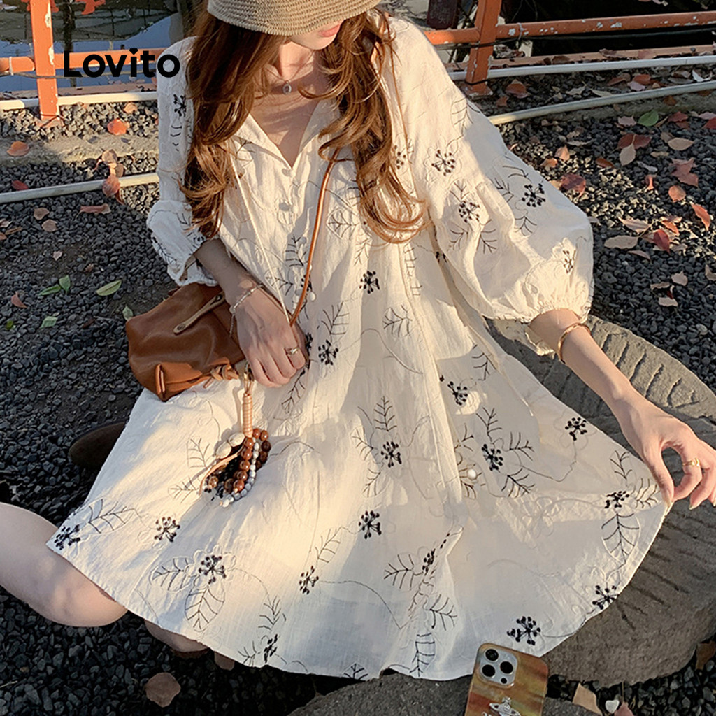 Lovito Vestido Casual de Primavera/verão Off White para mulheres L156AD285