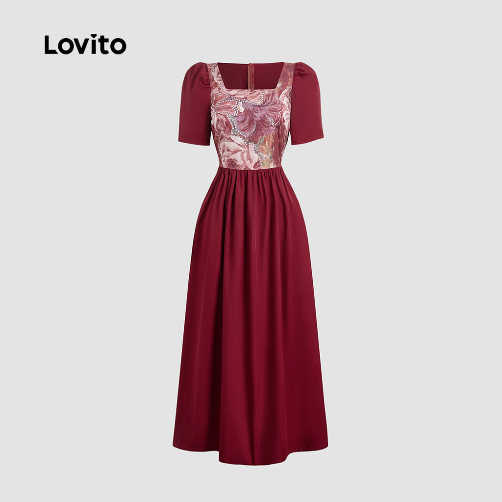 Lovito Vestido Casual de Primavera/verão Vermelho para mulheres L149ED489\4