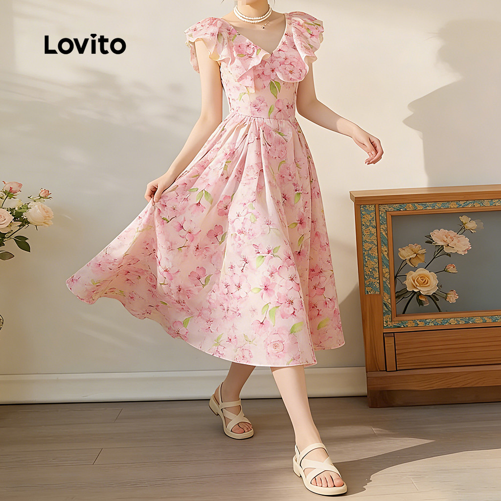 Lovito Vestido Casual de Resort com Babados em Rosa Primavera/verão para mulheres L183AD028