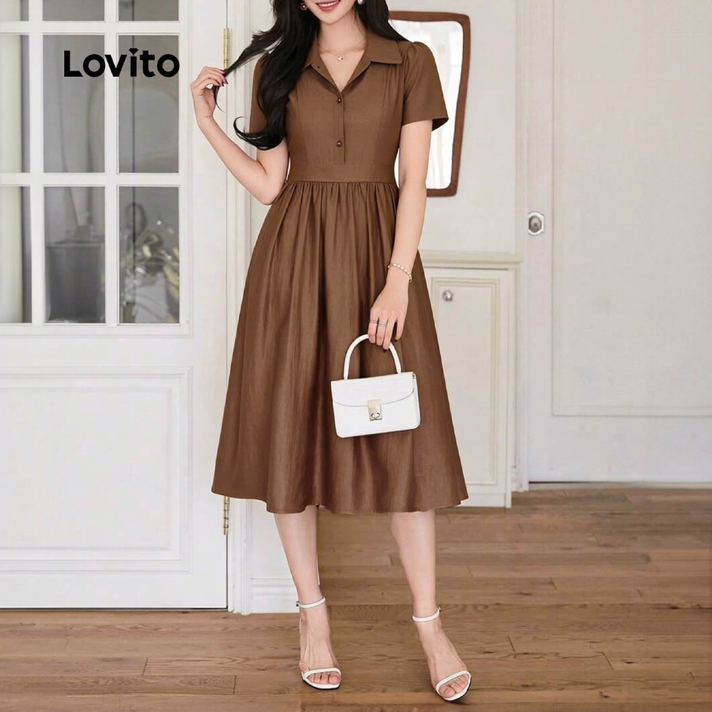 ✅DESTAQUES -❤️Drapeado -❤️Plissado -❤️Botão -❤️Boa textura -❤️Primavera e verão ✅DESCRIÇÕES Estampa / Padrão:Plano Estilo:Casual Tipo de vestido:A linha Tamanho Plus:Não Material:Poliéster Composição:95% Poliéster + 5% Elastano Tipo de modelagem:Impressão Regular Transparência:Não Esticar:Não-elástico Feito na China ✅O PACOTE INCLUI 1XVestir ✅INTRODUÇÃO LOVITO A Lovito é uma marca em crescimento que acredita no poder das meninas. Estamos comprometidos em oferecer opções de roupas fashion e acessíveis, para todos os estilos, necessidades e identidades. Acreditamos que a moda deve ser divertida, liberadora e fazer você se sentir incrível. Afinal, o melhor acessório para qualquer look é a autoconfiança! ✅NOTAS DE COMPRA Antes de comprar, dê uma olhadinha na tabela de medidas disponível no site. Lembre-se de que, por serem feitas manualmente, as medidas podem variar de 1 a 2 cm. As cores dos produtos também podem ter pequenas diferenças em relação às fotos, dependendo da iluminação e das configurações do seu dispositivo. Siga nossa loja e conheça novos itens e as melhores ofertas para você!! Se você tiver alguma dúvida, converse conosco e responderemos o mais rápido possível.😊