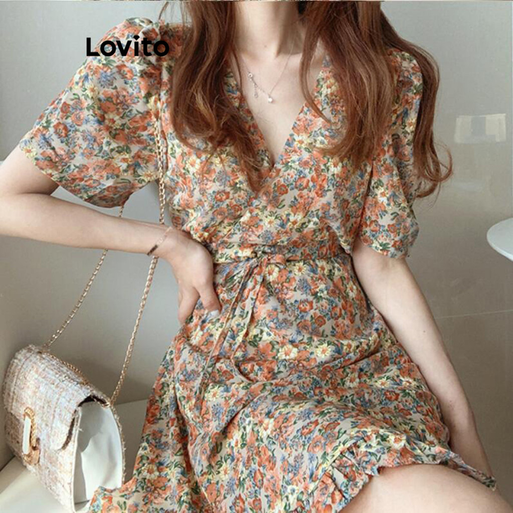 Lovito Vestido Casual Feminino Com Babados Florais E Renda Vestido De Verão/primavera L79AD059