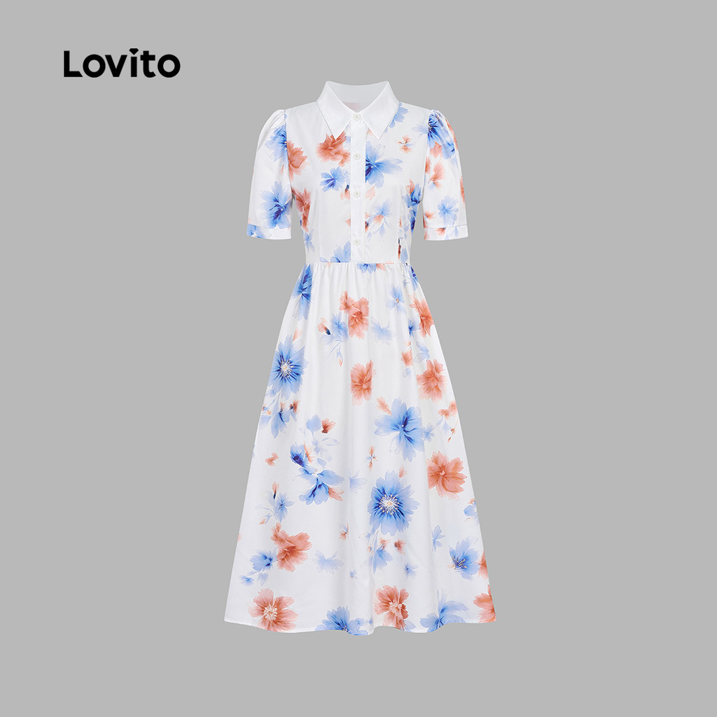 Lovito Vestido Casual Feminino de Verão com Botões Frontais e Estampa floral L34LDR083