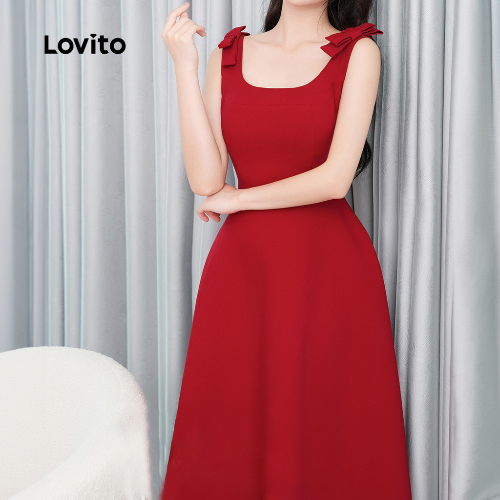 Lovito Vestido Casual Festa Estampa Borboletas Modelo Estruturado Primavera/verão Vermelho Para Mulheres L154ED278