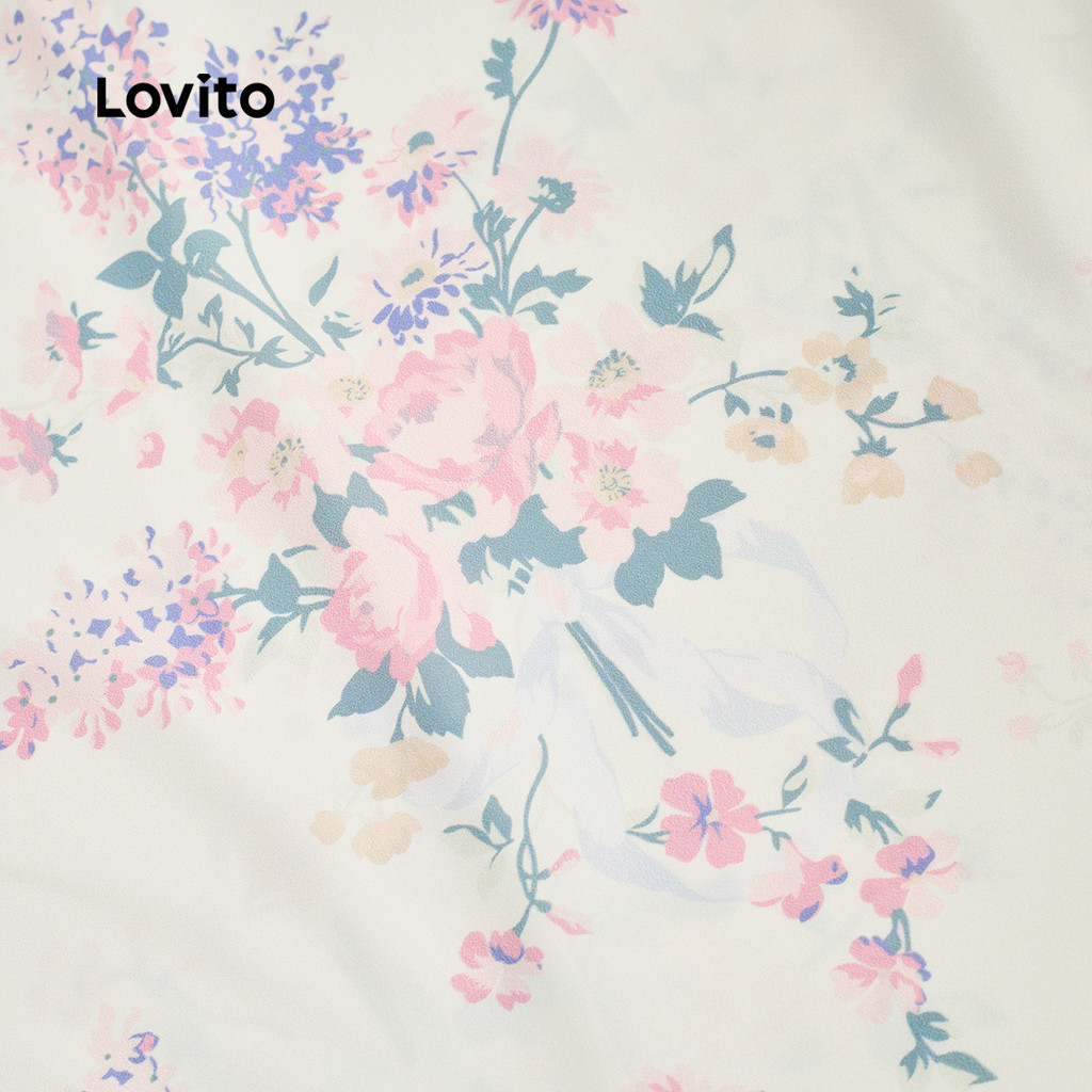 Lovito Vestido Casual Floral Botões Frontais Zíper Pregas Primavera/verão Perfeito Festivais Para Mulheres LBL27342